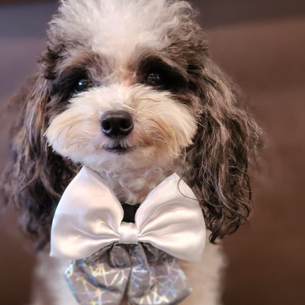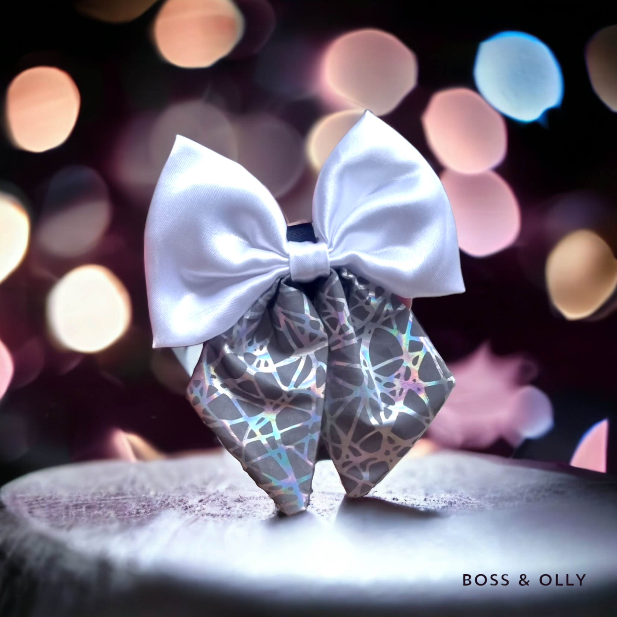 Attach this reflective sailor bow to your pet's collar or the strap of their harness for instant glow-up!