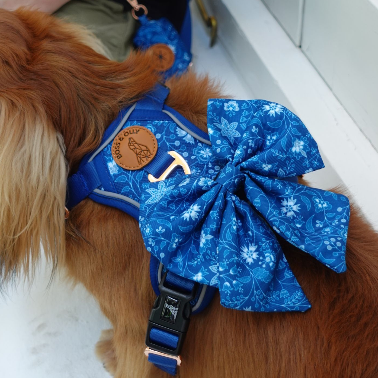 Complete the look with matching collar, harness, leash and poo bag holder.