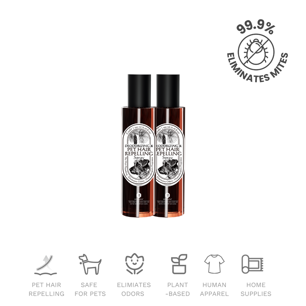 Deodorising & Hair-Repelling Spray (200 ml × 2) — Neutralises pet odour and creates an anti-static barrier on fabrics, so fur slides right off.