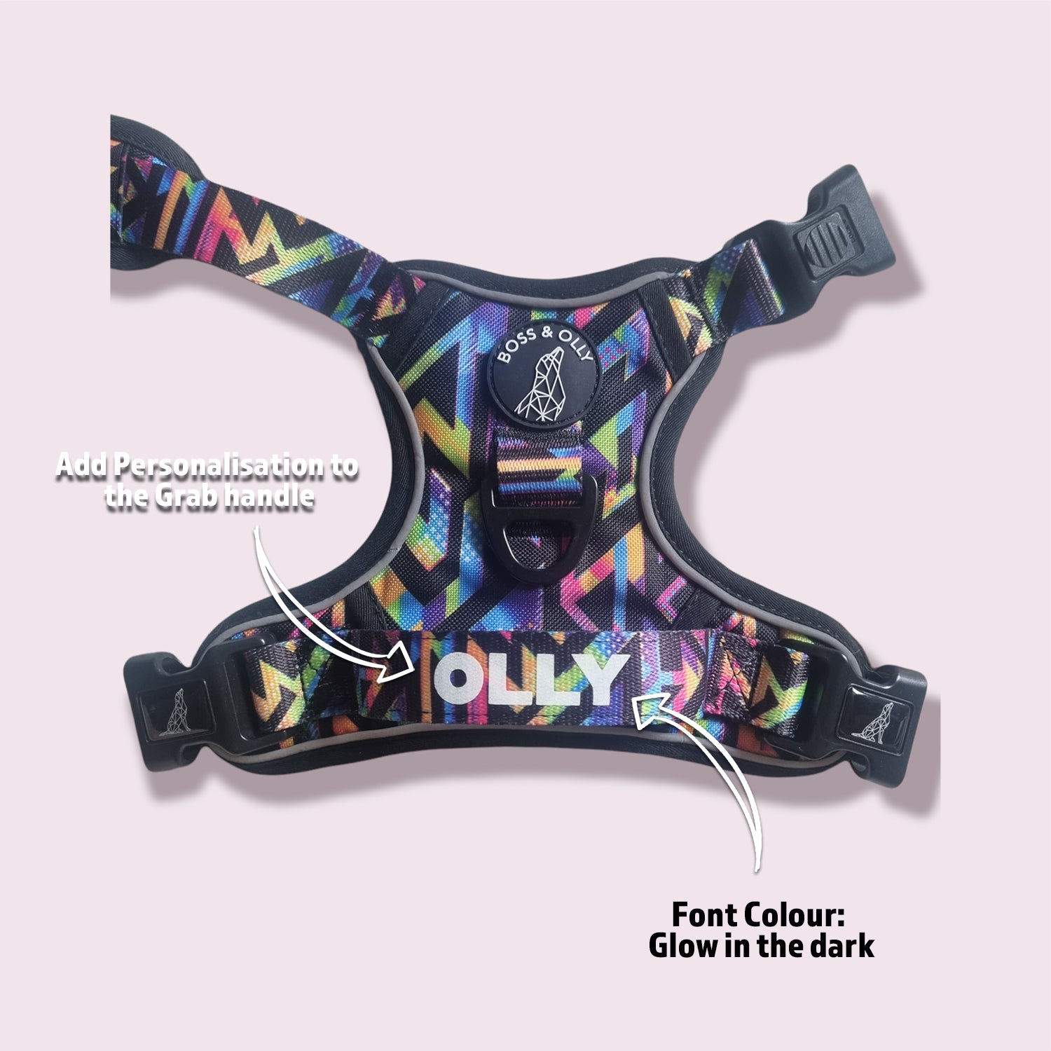 Washing instructions: We recommend hand-washing personalised harnesses and avoid abrasive chemicals/scrubbing of the personalisation. Do not soak in hot water. Harnesses without personalisation can be machine-washed. Please use a delicates wash bag and set the washer to a gentle cycle. Air dry after washing. Do not use the dryer.