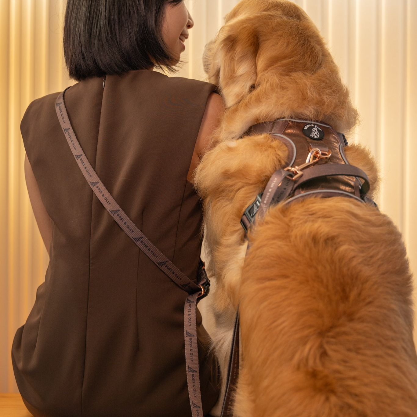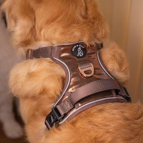 Bronze Sheen Outer Shell: Our Cinnamon Active Harness is inspired by the Maillard trending style. However, the material is more delicate and not as scratch-resistant compared to the Oxford outer shell used in our classic range, so extra care is needed to maintain its sheen.