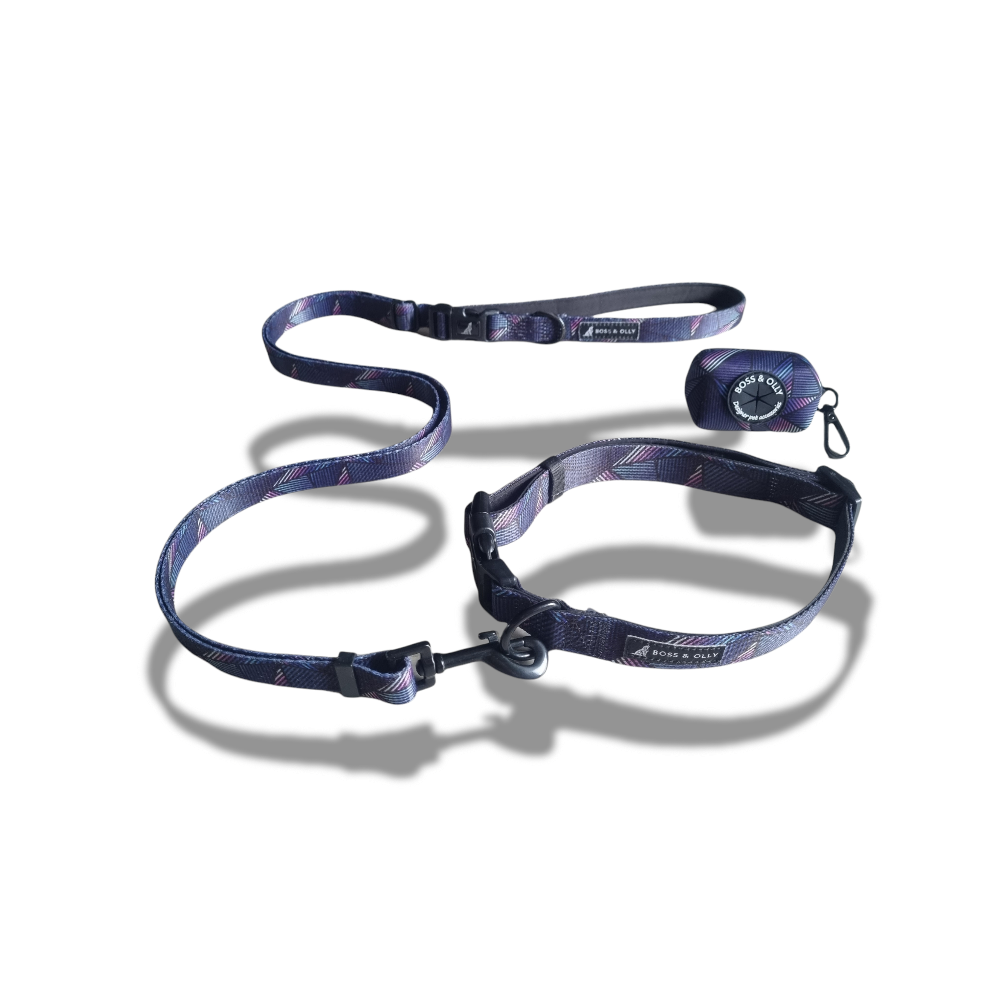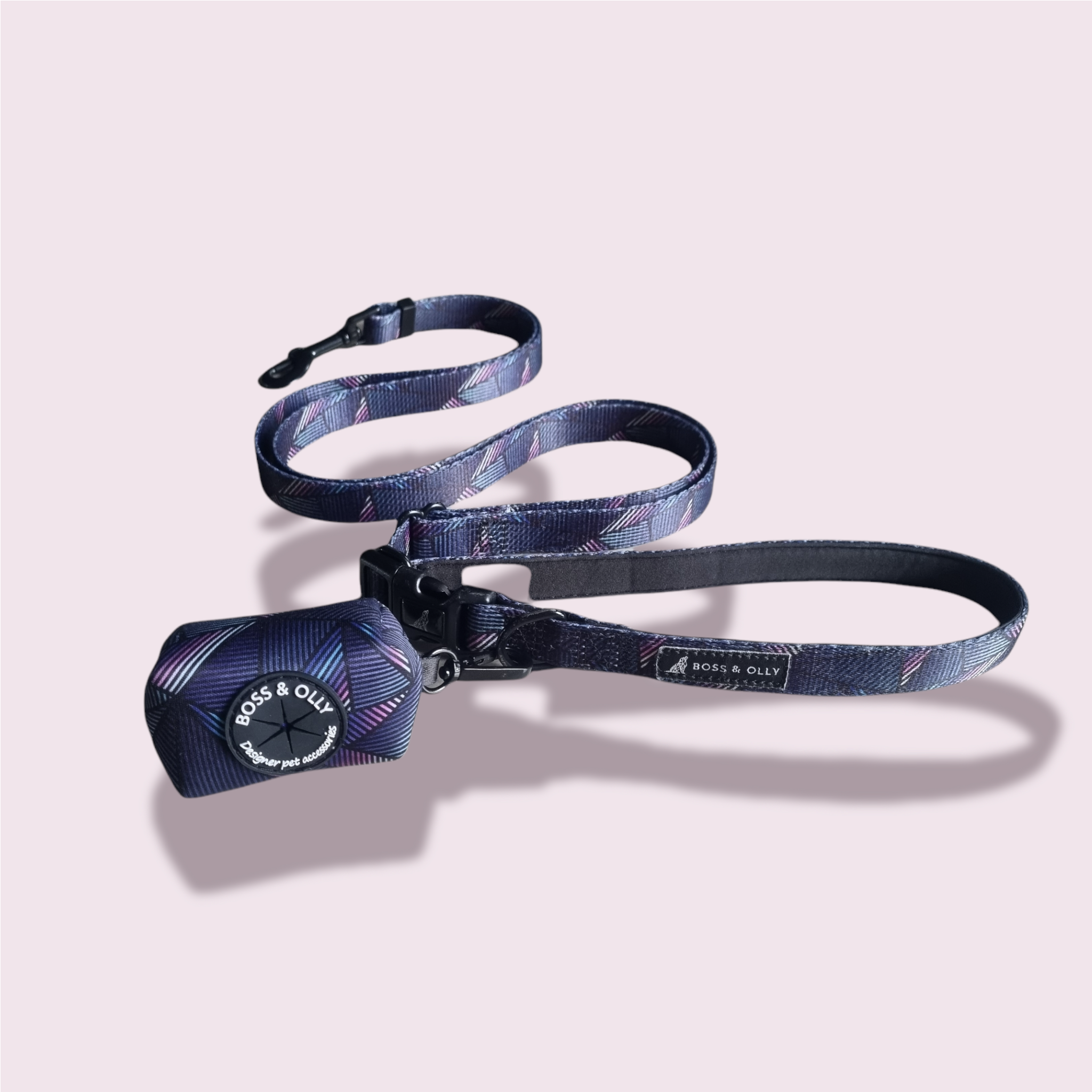 Complete the look with matching collar, harness and poo bag holder.