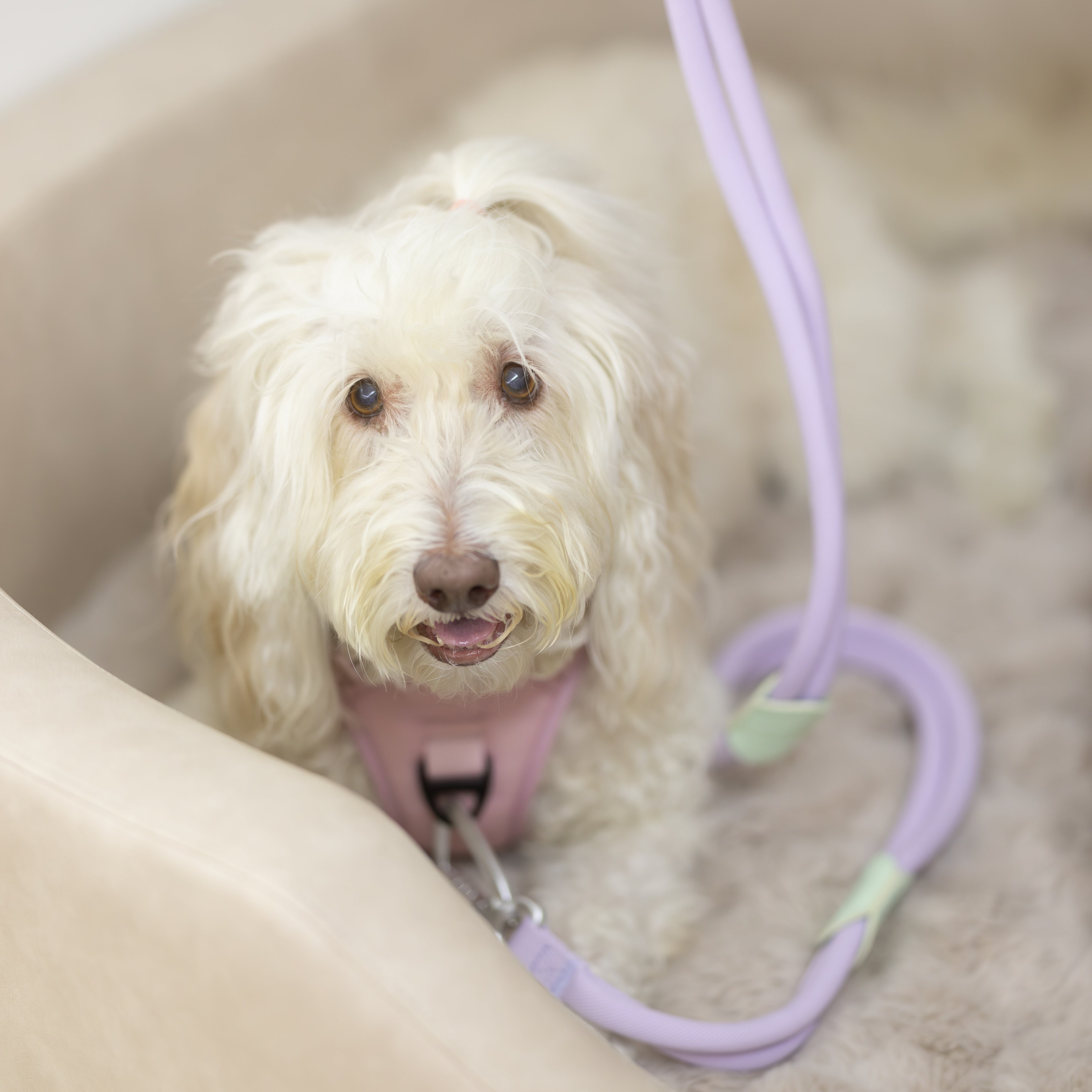 Soft, strong, and irresistibly squishy — the Soufflé Leash in Lilac is crafted from our Regular (2 cm) rope, offering a plush, cloud-like grip with reliable strength for daily walks.