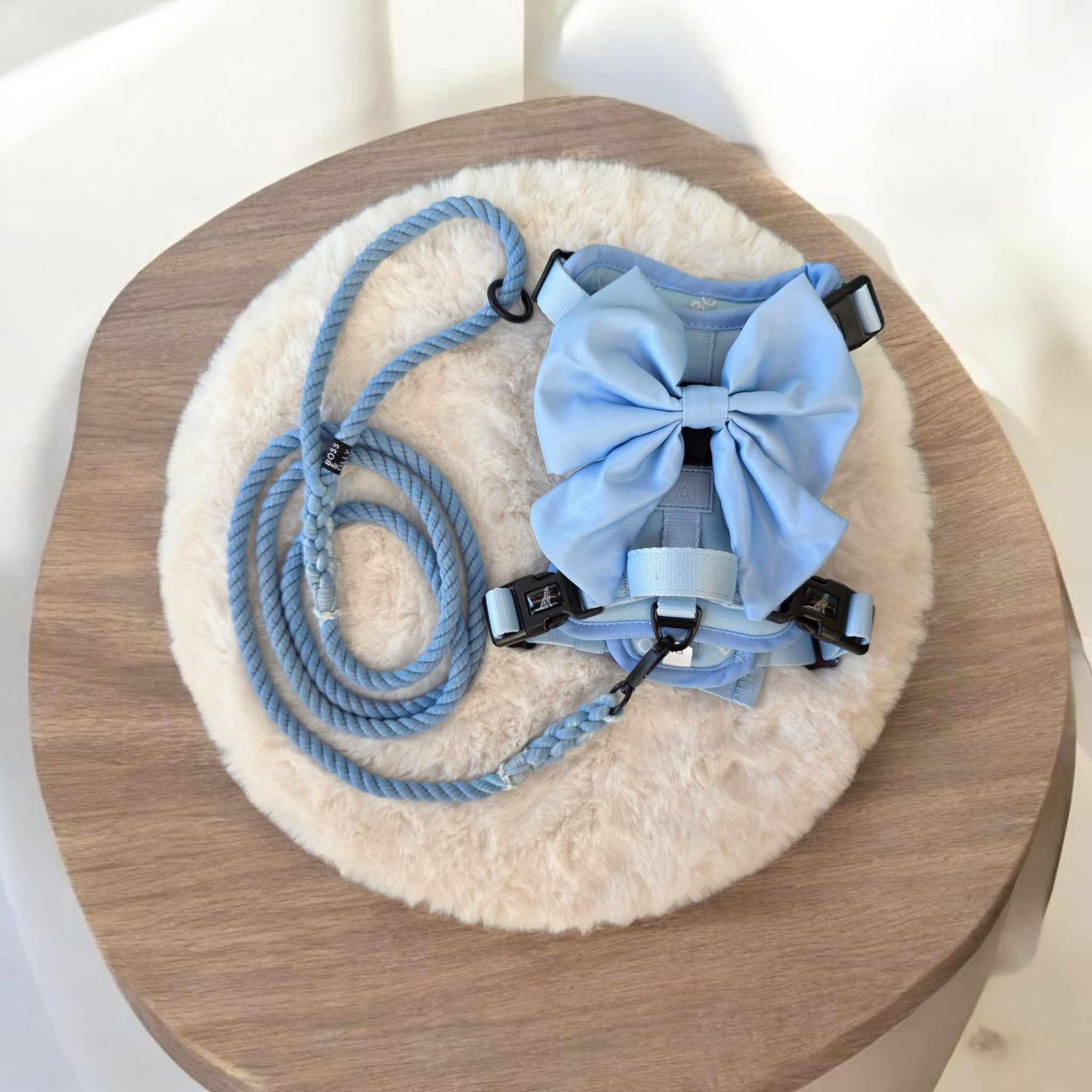 Matching Sailor Bow, Convertible leash, Rope leash, Waterproof leash, poo bag dispenser available (purchase separately).