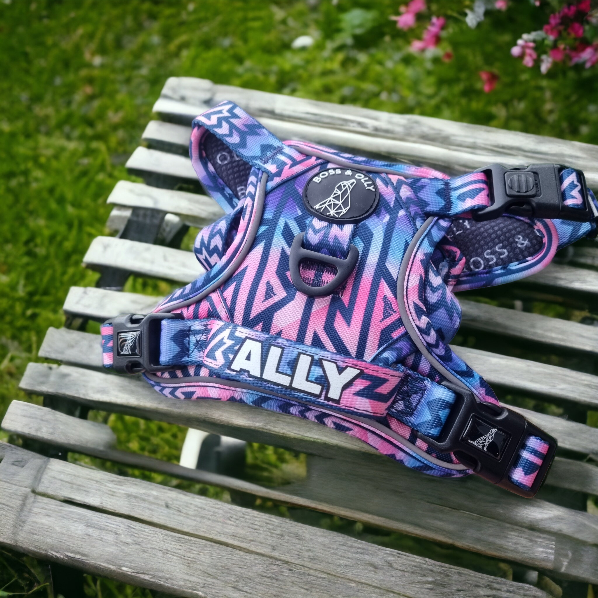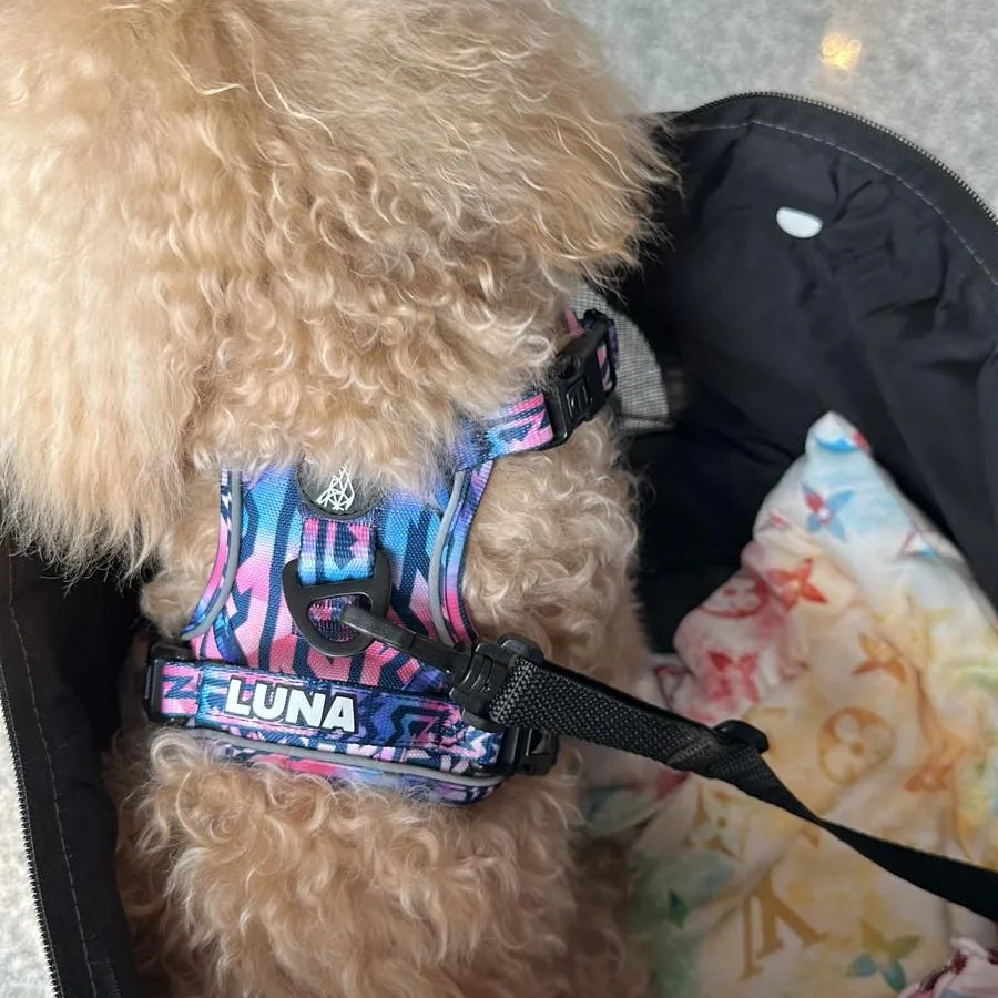 Washing instructions: We recommend hand-washing personalised harnesses and avoid abrasive chemicals/scrubbing of the personalisation. Do not soak in hot water. Harnesses without personalisation can be machine-washed. Please use a delicates wash bag and set the washer to a gentle cycle. Air dry after washing. Do not use the dryer.
