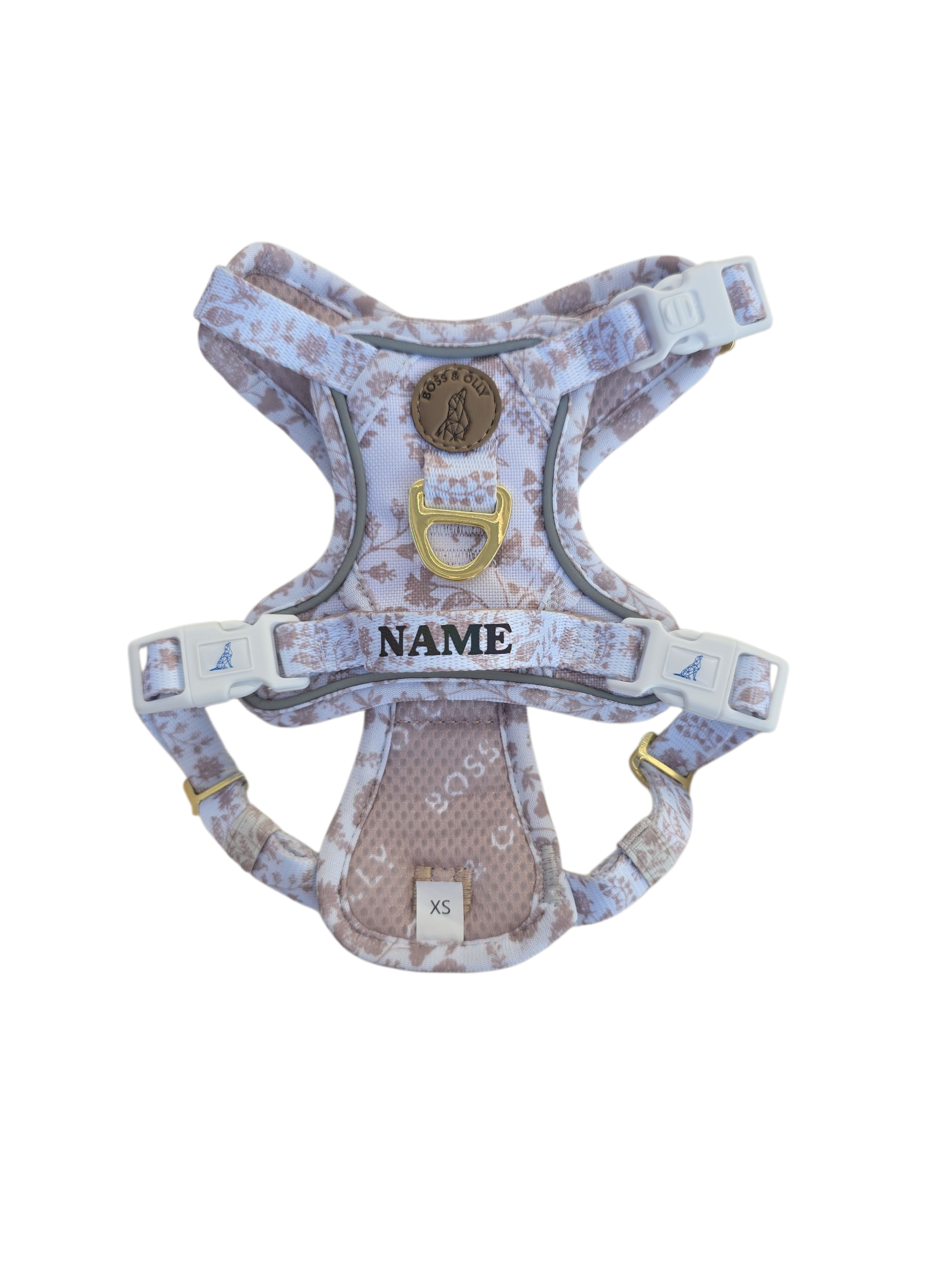Washing instructions: We recommend hand-washing personalised harnesses and avoid abrasive chemicals/scrubbing of the personalisation. Do not soak in hot water. Harnesses without personalisation can be machine-washed. Please use a delicates wash bag and set the washer to a gentle cycle. Air dry after washing. Do not use the dryer.