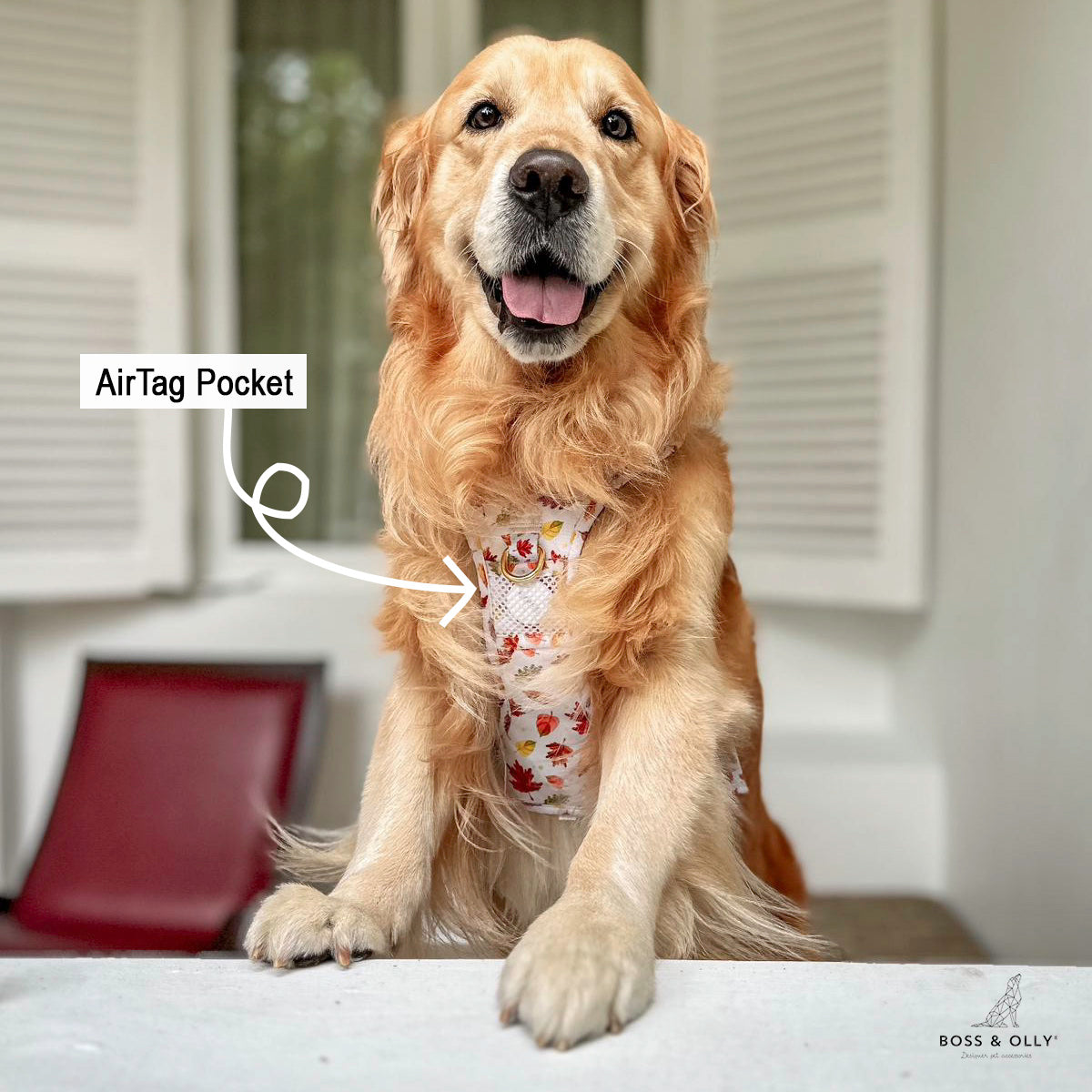+Front and back D ring attachment points. Attaching your leash to the front D ring discourages tugging while the back D ring attachment point is good for relaxed walks and Ergonomic design. The front D ring can also be used to attach your pet's ID tag or an airtag (attach to ring and tuck it into mesh pocket).