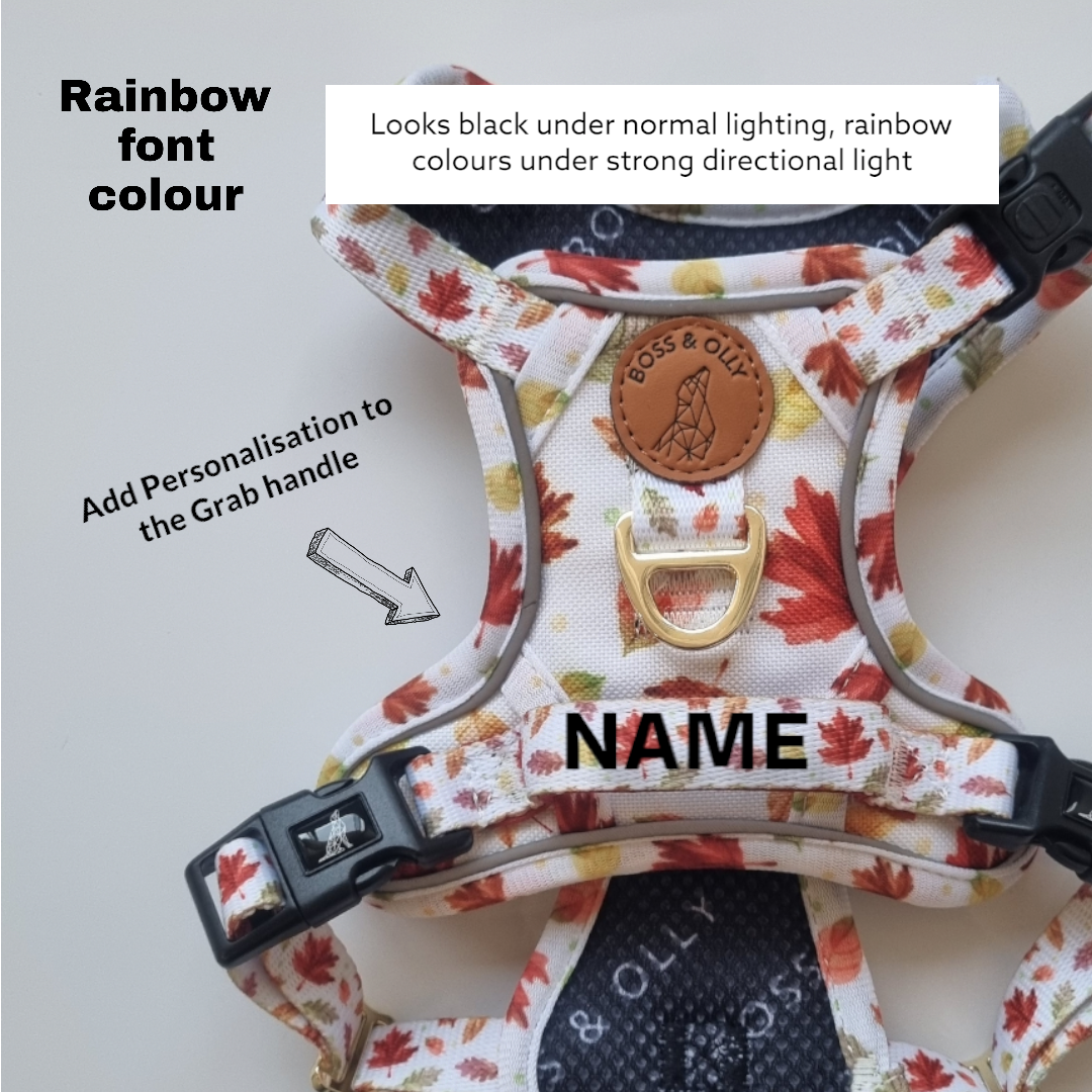 Washing instructions: We recommend hand-washing personalised harnesses and avoid abrasive chemicals/scrubbing of the personalisation. Do not soak in hot water. Harnesses without personalisation can be machine-washed. Please use a delicates wash bag and set the washer to a gentle cycle. Air dry after washing. Do not use the dryer.