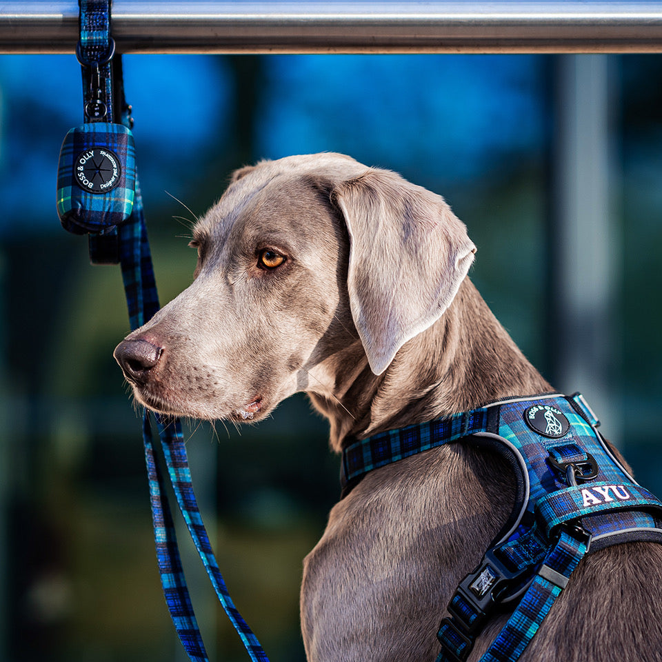 Complete the look with matching collar, harness and poo bag holder.